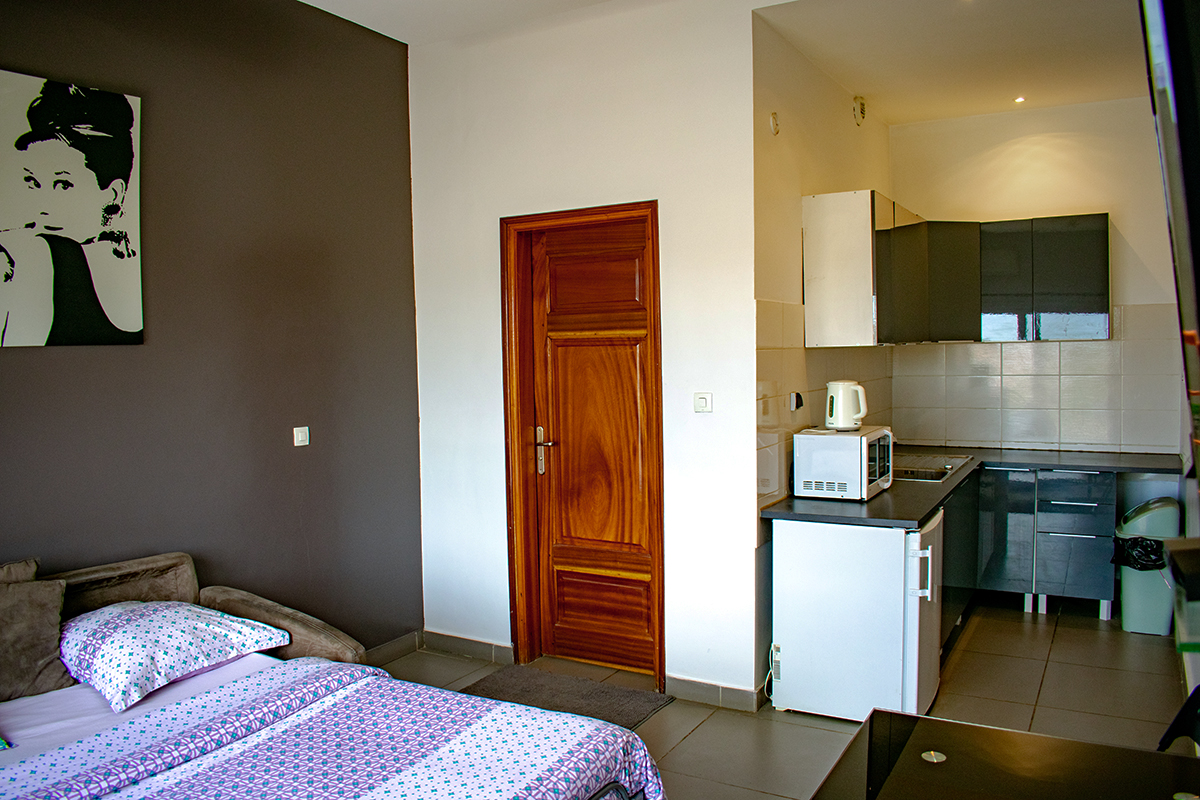 - Équipements : Canal+ gratuit, Chauffage, Climatisation, Gardien 24h/24h, Parking gratuit, Terrasse en extérieur, Wifi gratuit
